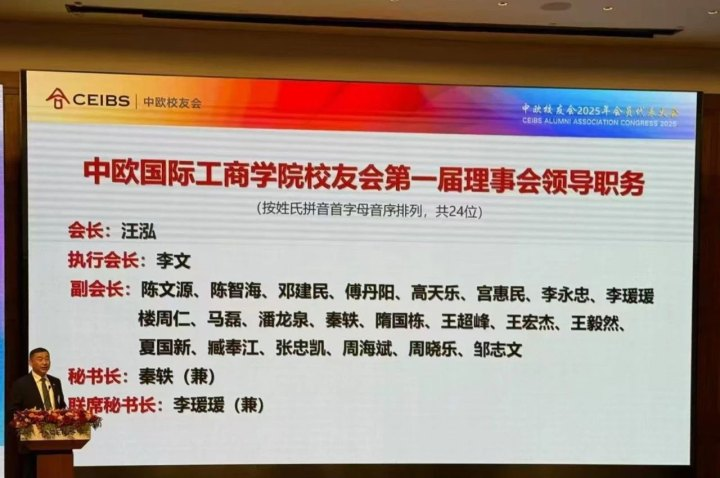 在校友代表大會上,校友代表們齊聚一堂,圍繞中歐校友組織未來的建設(shè)與發(fā)展、校友服務(wù)的提升和細(xì)化等議題展開討論,凝聚智慧,為中歐校友生態(tài)圈的繁榮發(fā)展添磚加瓦。經(jīng)選舉產(chǎn)生中歐國際工商學(xué)院校友會第一屆理事會,中歐國際工商學(xué)院院長、管理學(xué)教授汪泓當(dāng)選第一屆理事會會長。