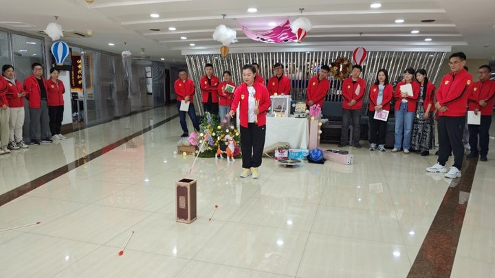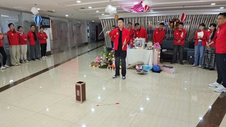 在投壺比賽環(huán)節(jié),現(xiàn)場氣氛被推向高潮。員工們以組隊形式選出代表,踴躍參與這項承載著千年歷史的傳統(tǒng)游戲。大家手持箭矢,屏氣凝神瞄準壺口,每一次投擲都伴隨著歡呼聲與掌聲,在感受傳統(tǒng)游戲魅力的同時,也深刻體會到中華文化的博大精深。