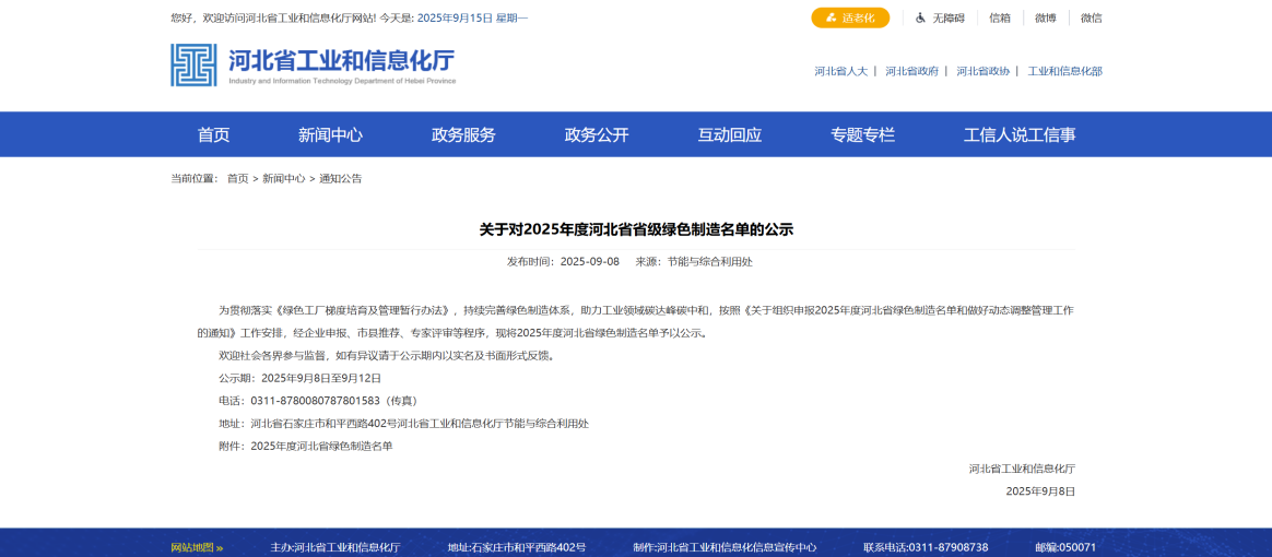 近日,河北省工業(yè)和信息化廳公布2025年度綠色工廠名單,滄州東盛金屬添加劑制造有限公司憑借“采用先進工藝技術,實現(xiàn)節(jié)能降碳,重視綠色發(fā)展,環(huán)保治理設施完善的優(yōu)勢。建立光伏電站,實現(xiàn)綠電替代”等方面的突出表現(xiàn)成功入選。